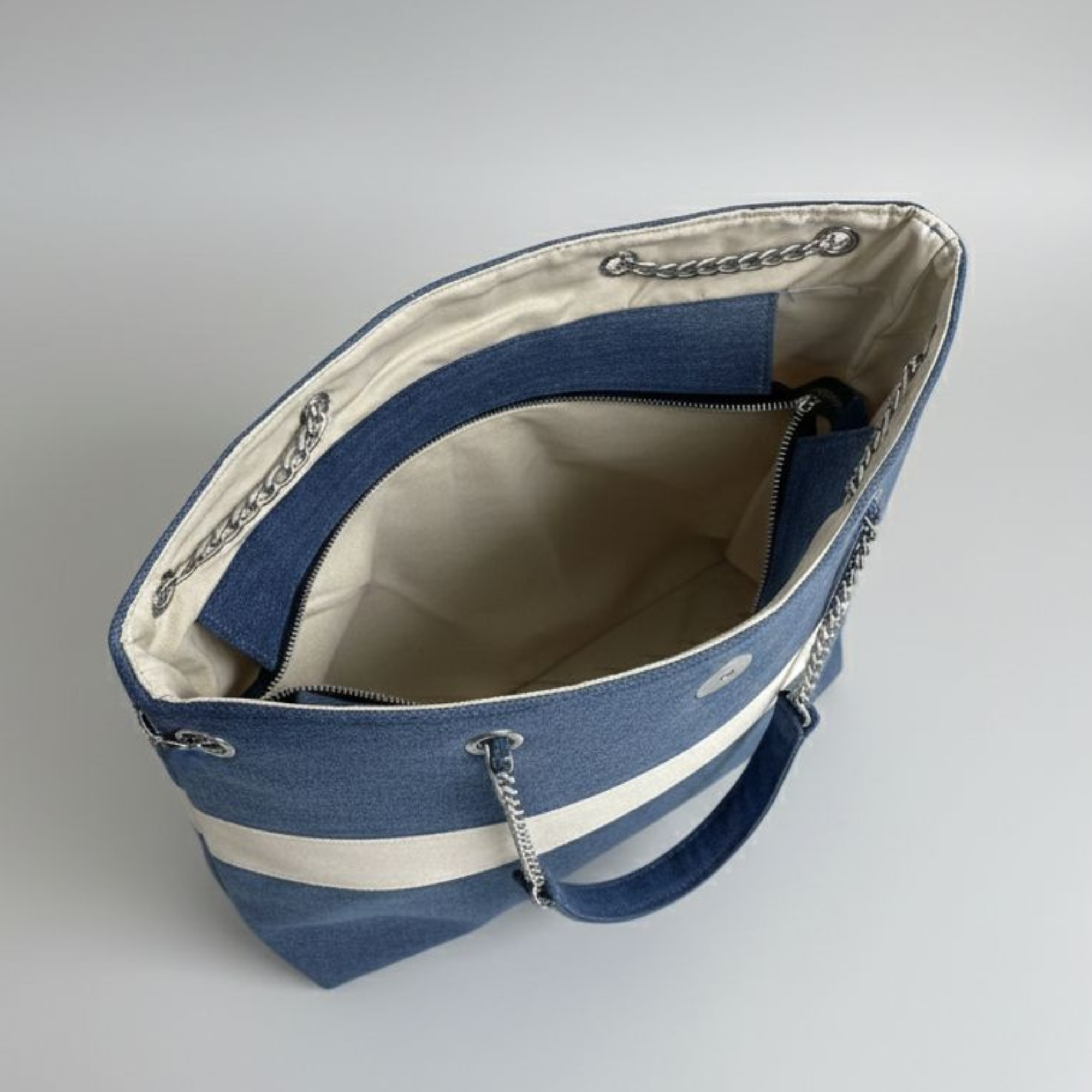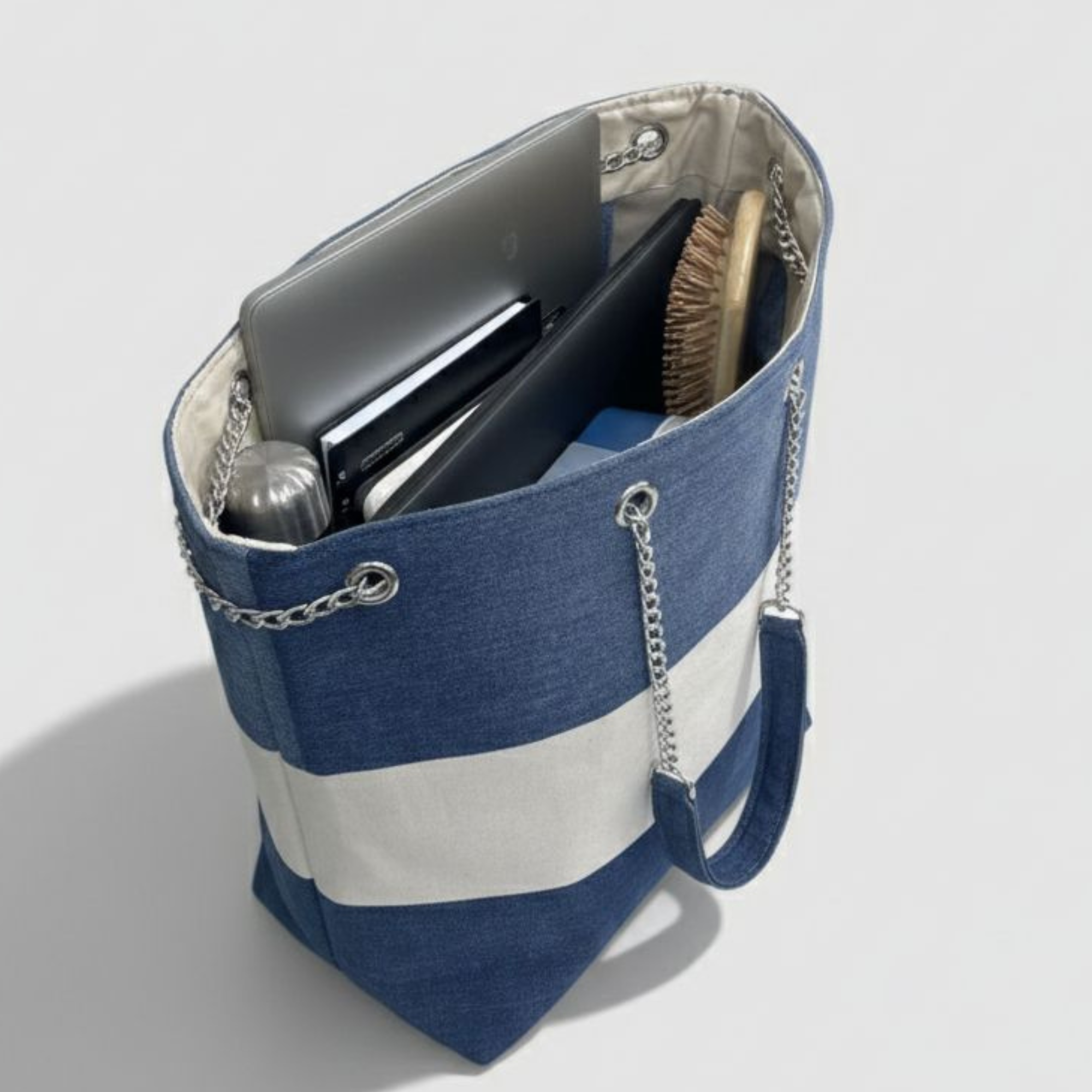 The Azure Stripe Tote brings together simplicity, structure, and sustainability in a design that feels both modern and timeless. Handcrafted using upcycled and surplus fabrics, the bold blue stripe adds a subtle statement to an otherwise clean and neutral silhouette, making it easy to pair with everyday outfits.