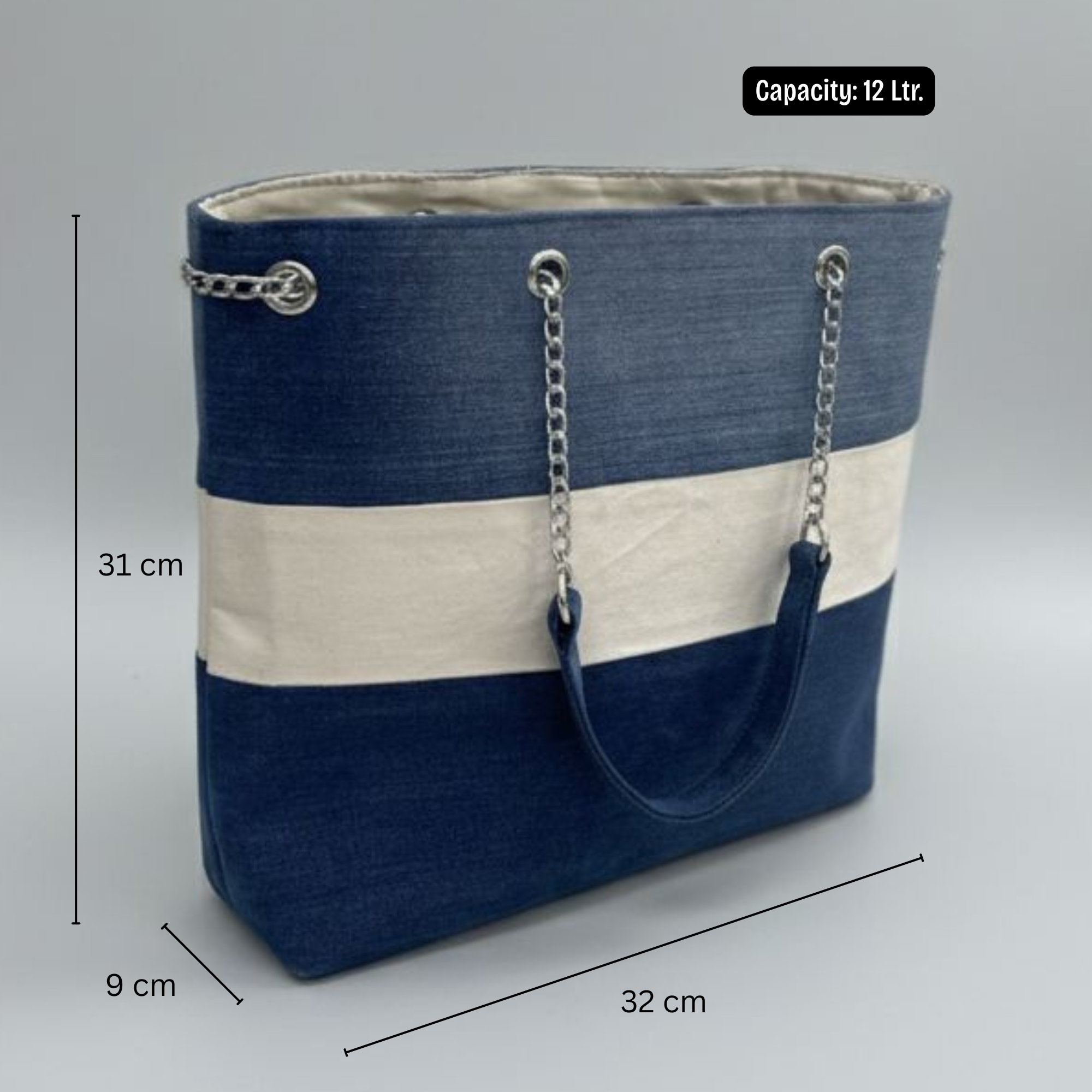 Designed for daily functionality, this tote offers ample space to carry your essentials—whether you’re heading to work, running errands, or stepping out for a casual day. The sturdy construction and comfortable chain-and-fabric handles provide durability while adding a refined touch to the overall look.