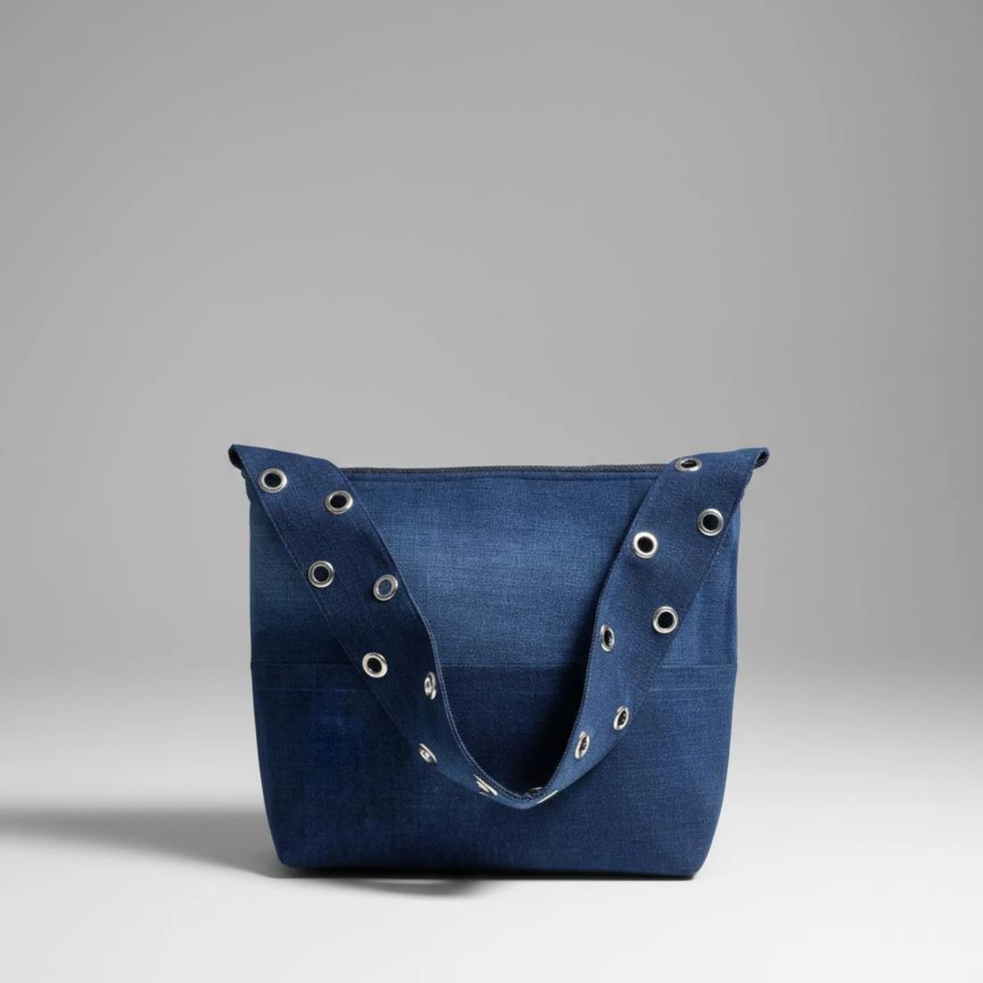 Designed for both style and functionality, the Upcycled Strap Stud Tote Bag features sturdy straps with metallic stud detailing, adding a bold and modern touch to its design. Its spacious and durable structure makes it the perfect everyday companion