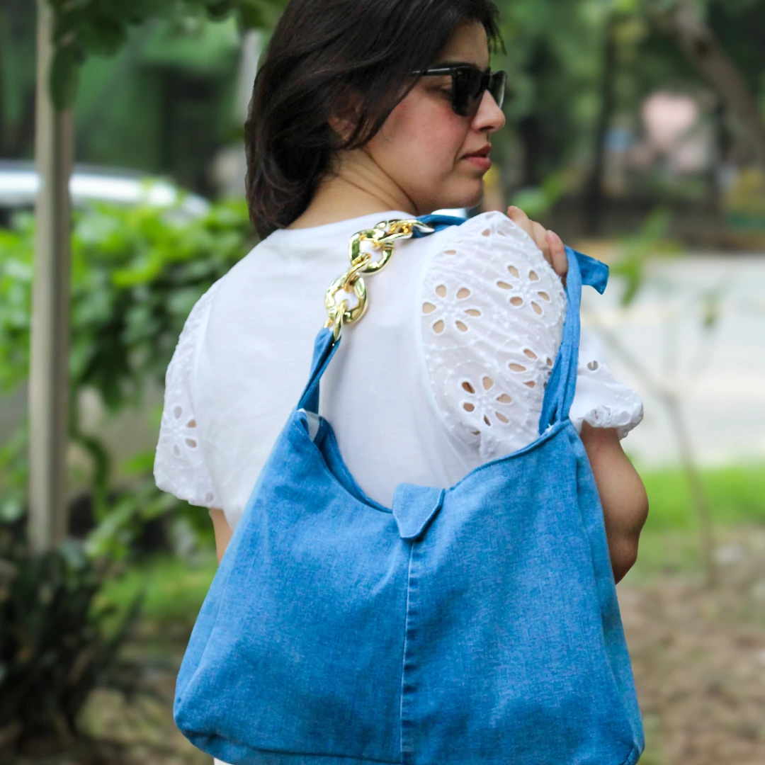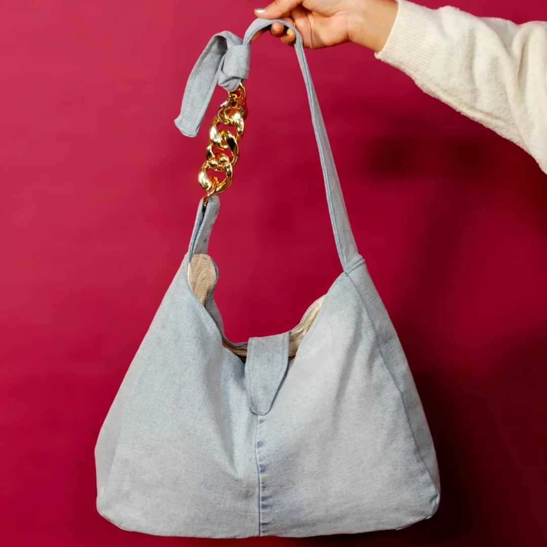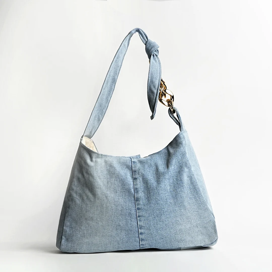 Elevate your everyday with the ISF Edition E3: Denim Delight Shoulder Bag—crafted from high-quality industrial denim in a soft, minimalist silhouette.